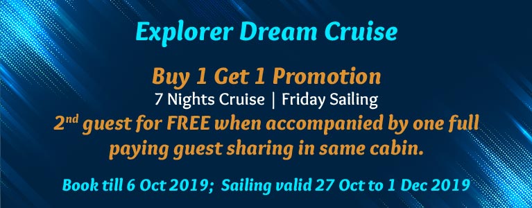 5 Nights Genting Dream Cruise with Inside Cabin, 3 Nights Singapore, Airfare, Breakfast, All Meals on Cruise, Singapore City Tour, Transfers, Visa & All Taxes. Visa charges for port of halt not included.