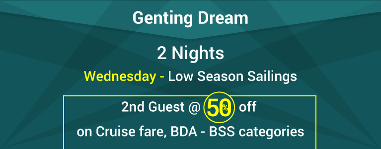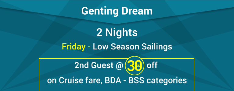 3 Nights Genting Dream Cruise with Inside Cabin, Airfare, All Meals on Cruise & All Taxes.